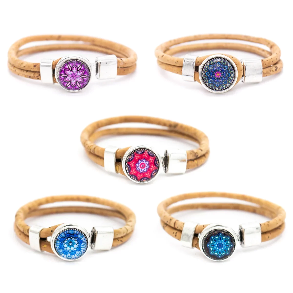 100 % liège avec des motifs colorés, au style carreau de ciment.